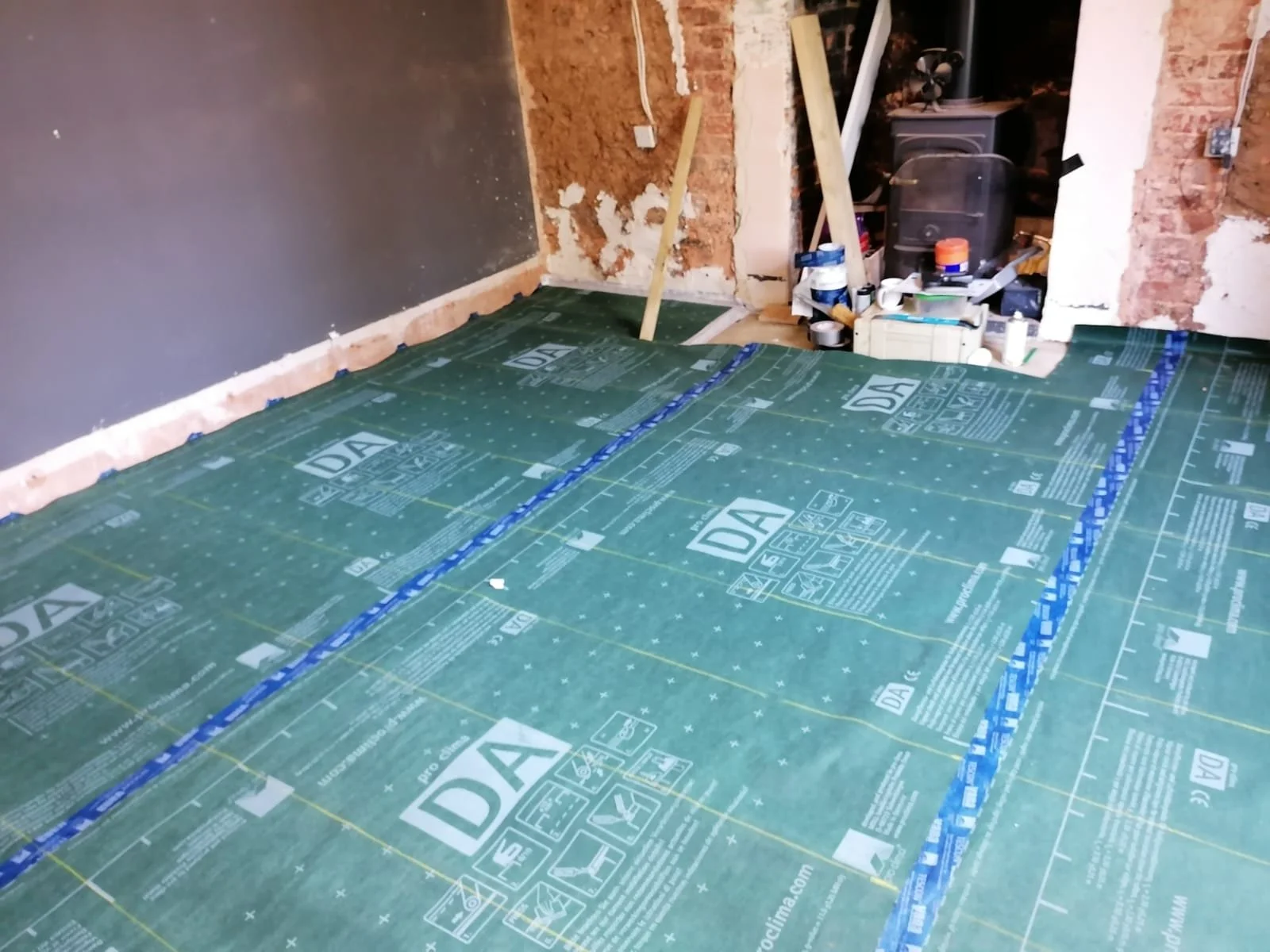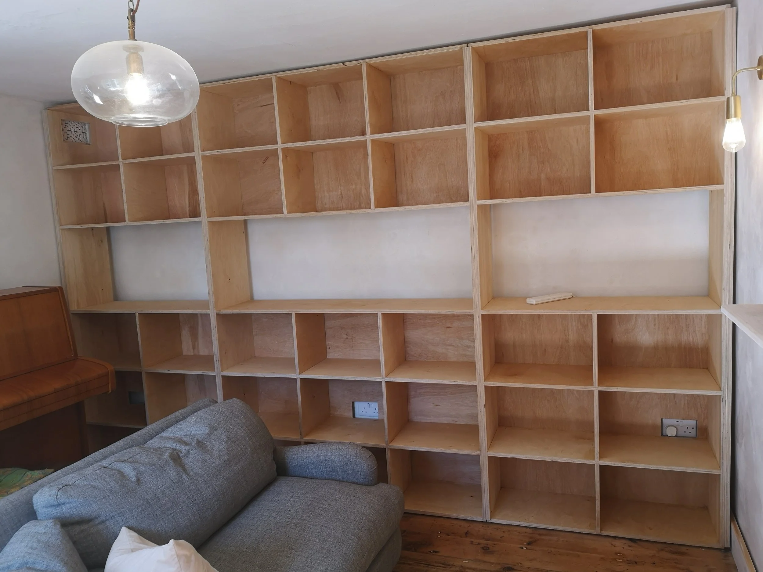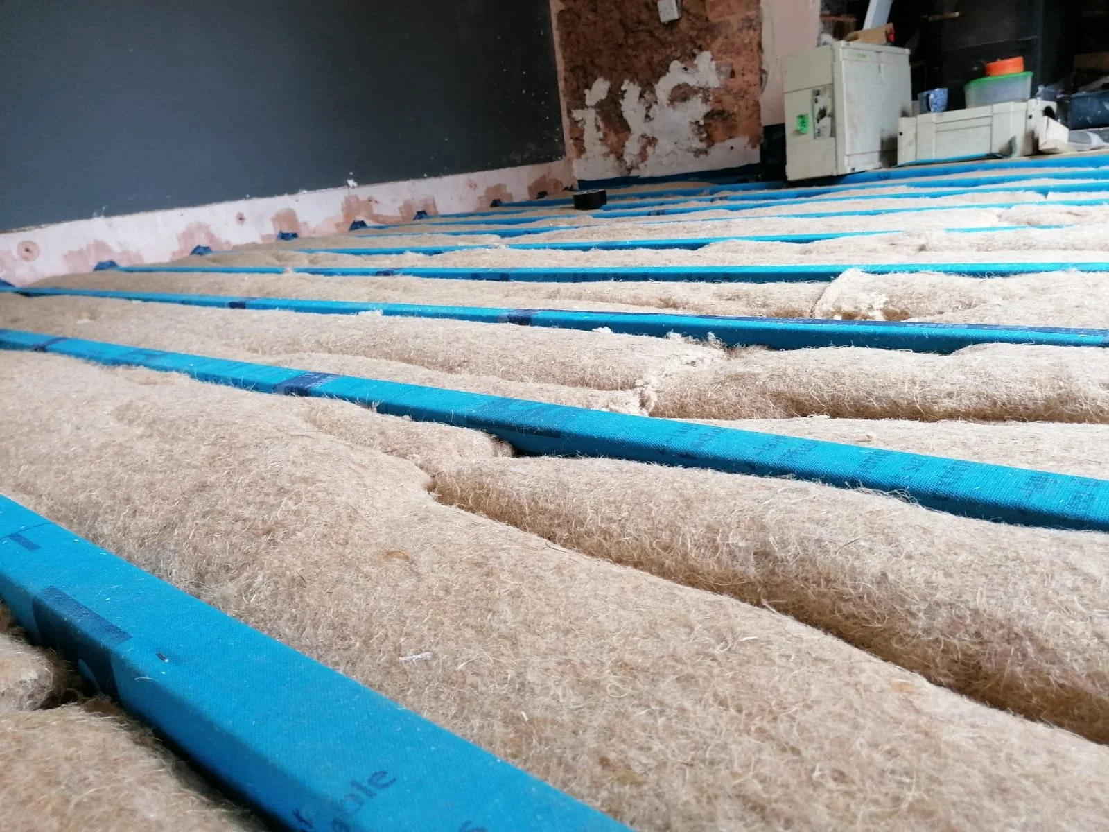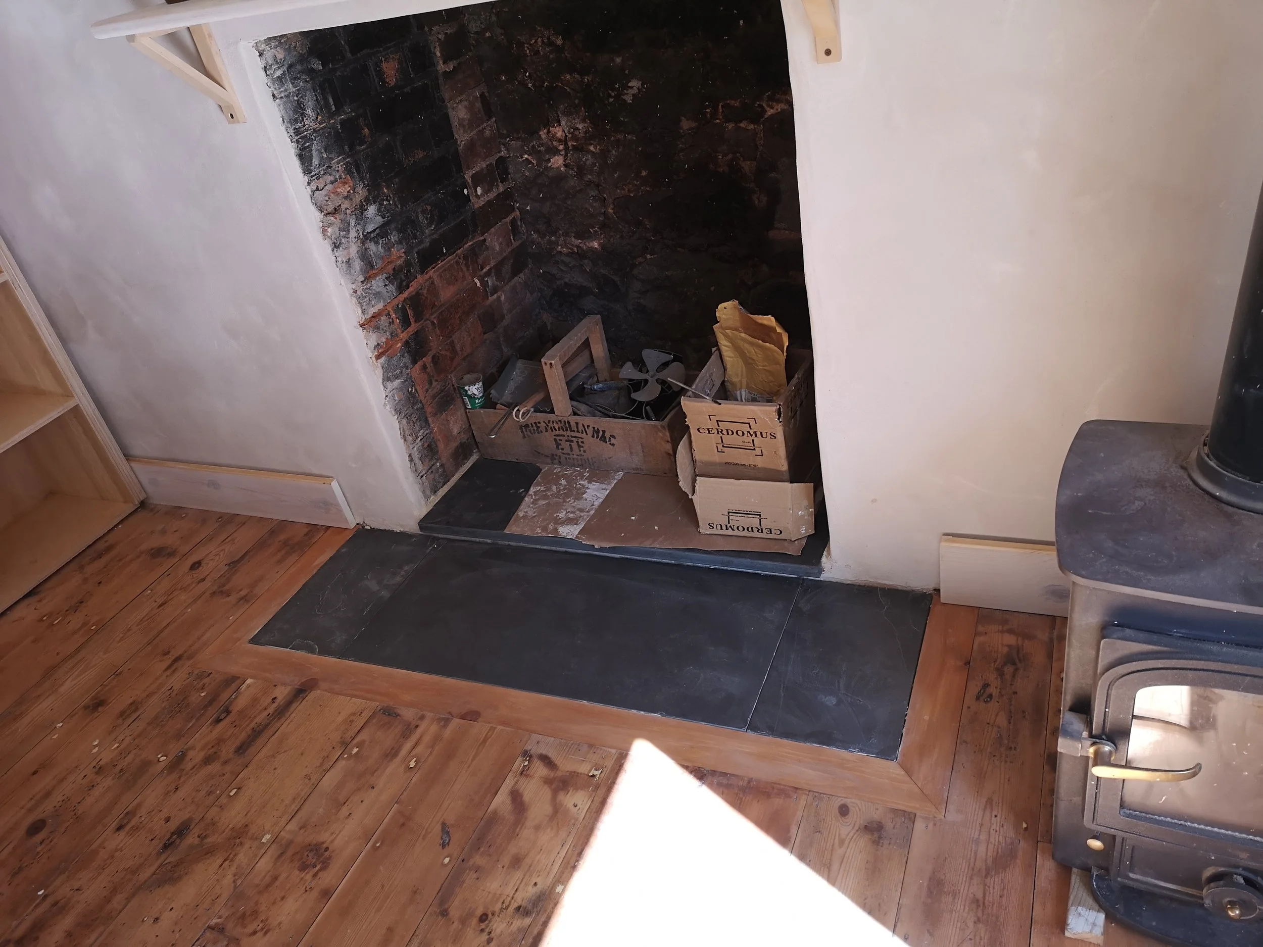 Hemp/ jute insulation Airtight floor New old floor, new hearth Birch ply shelving Lime plaster, lime pointing